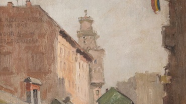 Paneel: 48.5 x 57.5 cm gesigneerd.