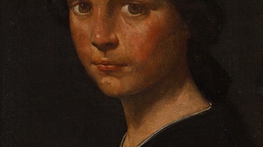 Portret van een meisje met haarband. Paneel: 27×17,5cm Gesigneerd r.o. en gedateerd ‘24.